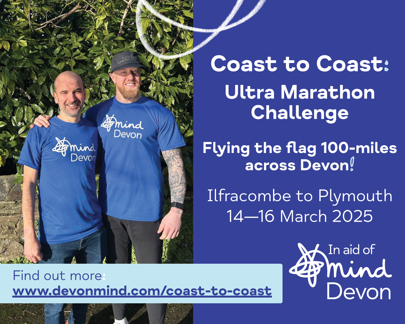 Last weekend, two incredible individuals, Wayne Kirby, Head of Services at Devon Mind, and Ricky Callow, local PT and business owner, ran 3 ultra marathons in 3 days across the county to help raise vital funds and awareness within the local communities we provide support.