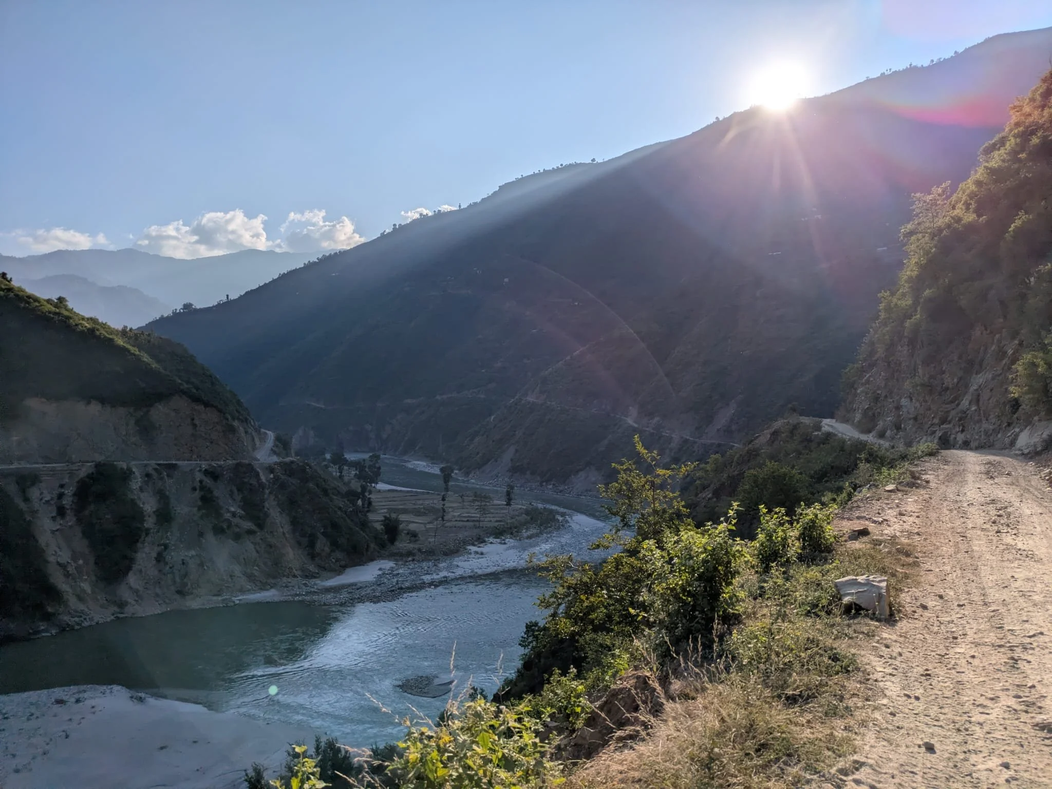 Again, I didn't really factor in the camping side of the adventure. There was a toilet tent, but the toilet consisted of a hole dug for everyone to use (all 20 odd of us). You can just imagine how pleasant that was in the morning. Although it was super hot during the day, it was freezing at night. Camping in the middle of a glacial river bed and having a herd of cows walk through and the village dog sit waiting for us to feed him, whilst a group of children played with the toys we bought, was a highlight. Another highlight was the joy on one of the villagers’ faces as he proudly walked around our camp showing us a photo of himself that our photographer printed off from last year’s event. The smallest thing but the biggest for him. Nepal was beautiful, not just the scenery and being able to see the Himalayas in the distance every day, but the people who smiled at me, and the children who giggled and shouted hello as we passed. I had one school child keep up with me for 4 miles, which was their walk home, and I had two dogs join and run happily alongside me for 5 miles. The Nepalese are the most welcoming people and are very proud to show you their country.